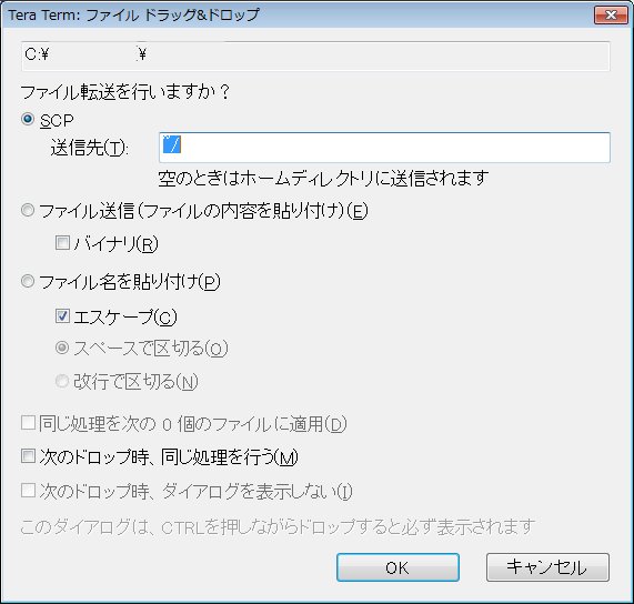 SCPでファイル転送を行うか聞いてくるので、OKを押す。
